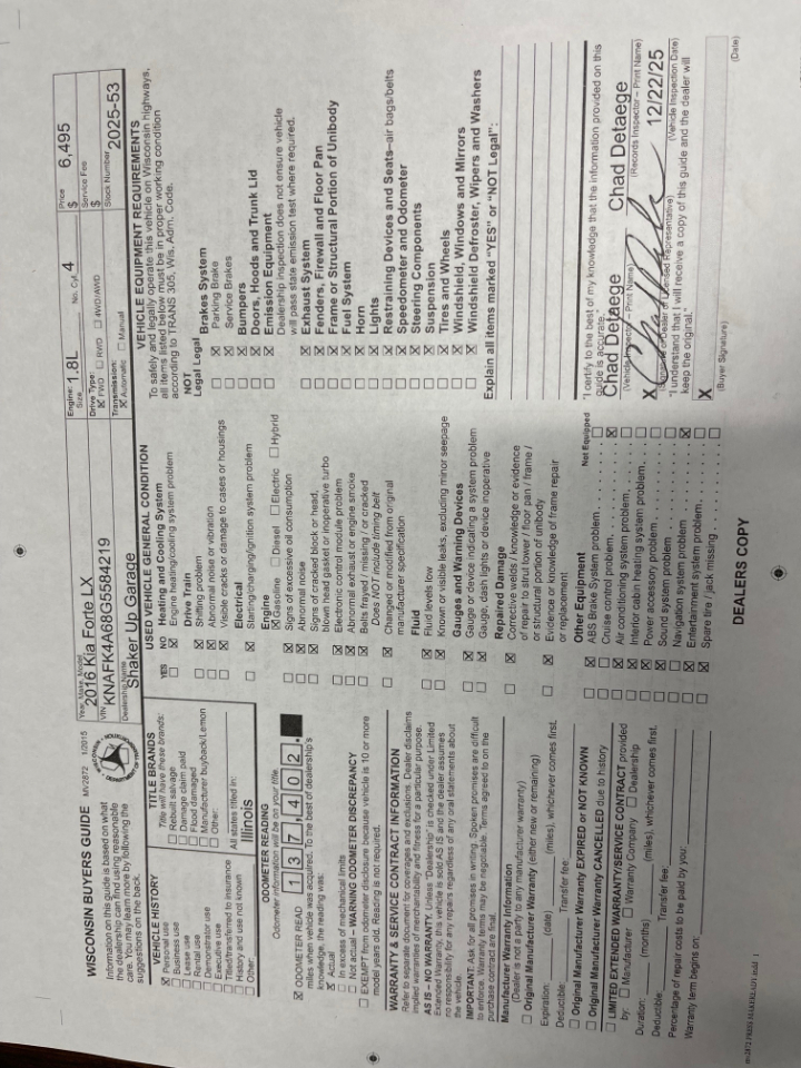 2016 Kia Forte LX w/Popular Package